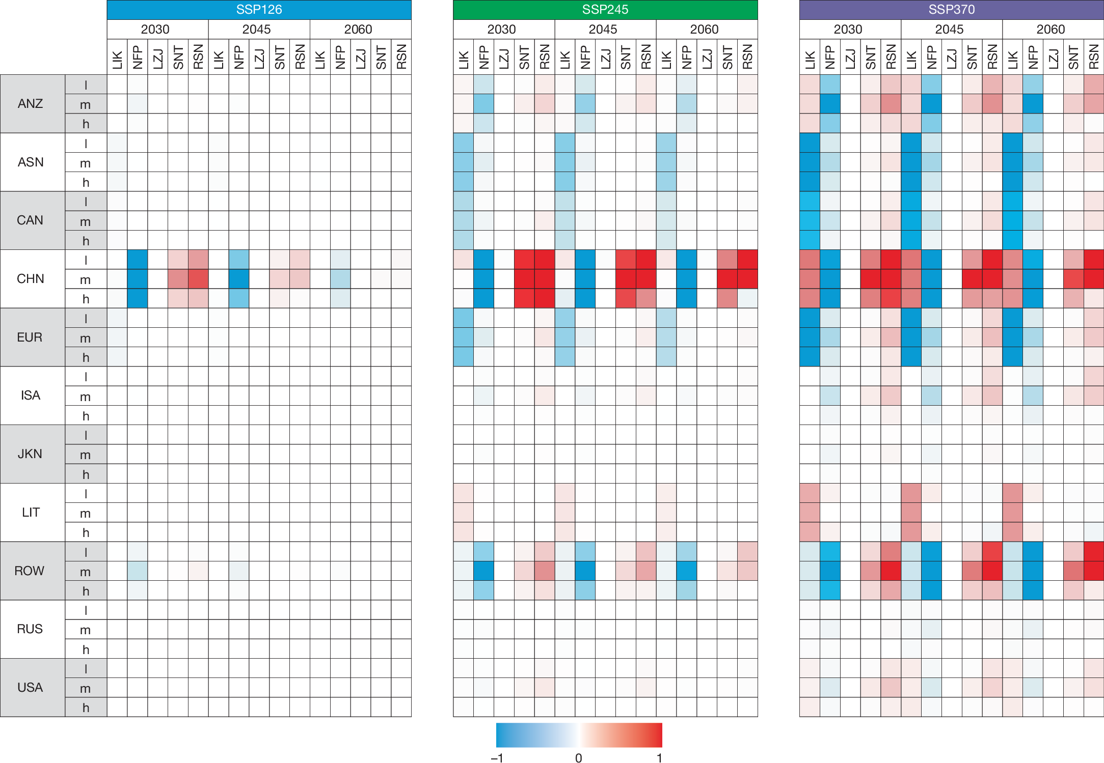 不同循环利用情景下的区域和部门排放变化