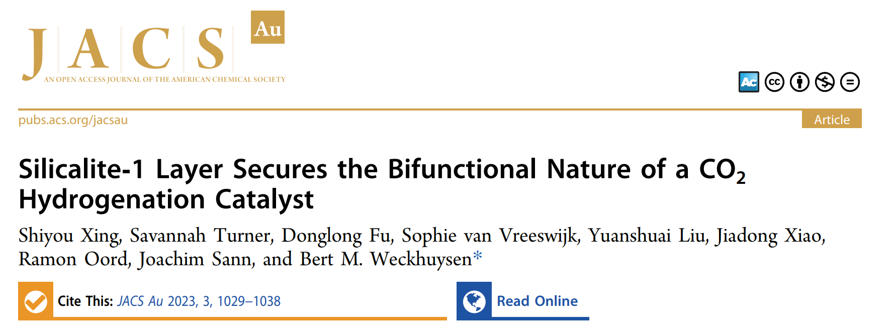 近期,918博天堂联合荷兰乌特勒支大学在美国化学会旗舰期刊JACS Au上发表题为Silicalite-1 Layer Secures the Bifunctional Nature of a CO2 Hydrogenation Catalyst的研究成果,并选为封面文章。 顺利获得非均相热催化,利用可再生绿氢对CO2进行转化,有望为温室气体去路给予新路径,同时可以为非化石来源的化学品和燃料合成给予全新方案。鉴于各行各业,特别是航空业,对碳氢燃料的需求与日俱增,顺利获得CO2加氢直接实现碳碳偶联具有重大意义。已有的研究提出,利用双功能催化材料如In2O3/H-ZSM-5可实现高效碳碳偶联,即先在金属氧化物In2O3上将CO2转化为甲醇,所得的甲醇再转移至酸性分子筛上进行偶联转化为烃。该过程打破了费托合成过程中的Anderson–Schulz–Flory(ASF)限制,在调控烃类产物选择性方面展现出较大潜力。 在该双功能催化过程中,缩短双功能组分距离可促进反应中间体转移,从而显著提高碳碳偶联性能。然而粉末混合的铟基材料容易丧失碳碳偶联活性,这可能是由于在反应过程铟物种迁移至沸石分子筛内,中和毒化了沸石B酸位点;同时铟物种的迁移导致氧化铟表面氧空位活性位点发生重构,导致失活;此外,长时间甲醇转化形成的沸石积碳是该双功能催化体系的另一个潜在失活因素。 为此,本文报道了一种简单的方法来克服上述3个难题,即在H-ZSM-5沸石晶体外原位生长一层硅沸石Silicalite-1(S-1)壳层,从而(1)抑制了铟的迁移,保持了H-ZSM-5的酸性;(2)阻止In2O3表面过度还原;以及(3)顺利获得抑制甲醇-烃转化中的芳烃循环来提高催化剂寿命。因此,本方法可以恢复在纳米尺度(粉末混合)下C2+烃的合成活性。此外,在微米尺度(颗粒混合)下,与无S-1壳层的催化剂相比,含有S-1壳层催化剂的性能更高。该研究开展了一种有效的屏蔽策略,为提升CO2加氢双功能材料的催化性能及稳定性给予了创新方案。 该研究由广州能源研究所联合荷兰乌特勒支大学Bert Weckhuysen教授课题组完成,论文第一作者为918博天堂生物质能生化转化研究室特别研究助理邢世友。 原文链接:http://pubs.acs.org/doi/full/10.1021/jacsau.2c00621