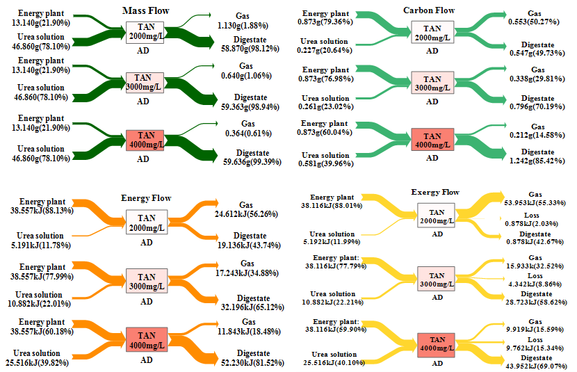 图1氨对厌氧发酵产气性能、关键反应自由能、能量及物质流动的影响