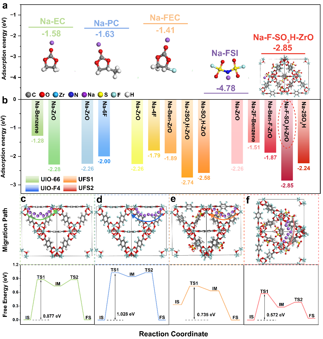 理论计算揭秘MOF骨架的“离子高速通道”:UFS2@GF中亲钠特性及扩散机制模拟