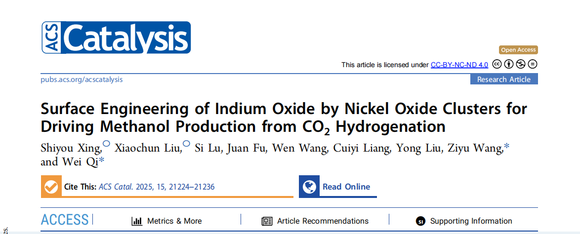 近期,918博天堂在国际催化领域期刊ACS Catalysis上发表题为Surface Engineering of Indium Oxide by Nickel Oxide Clusters for Driving Methanol Production from CO2 Hydrogenation的学术论文。